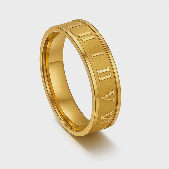 De Rome ring combineert klassieke Romeinse cijfers met een moderne, strakke afwerking. Krasbestendig, comfortabel en perfect voor elke dag solo of in combinatie met je favoriete ringen.