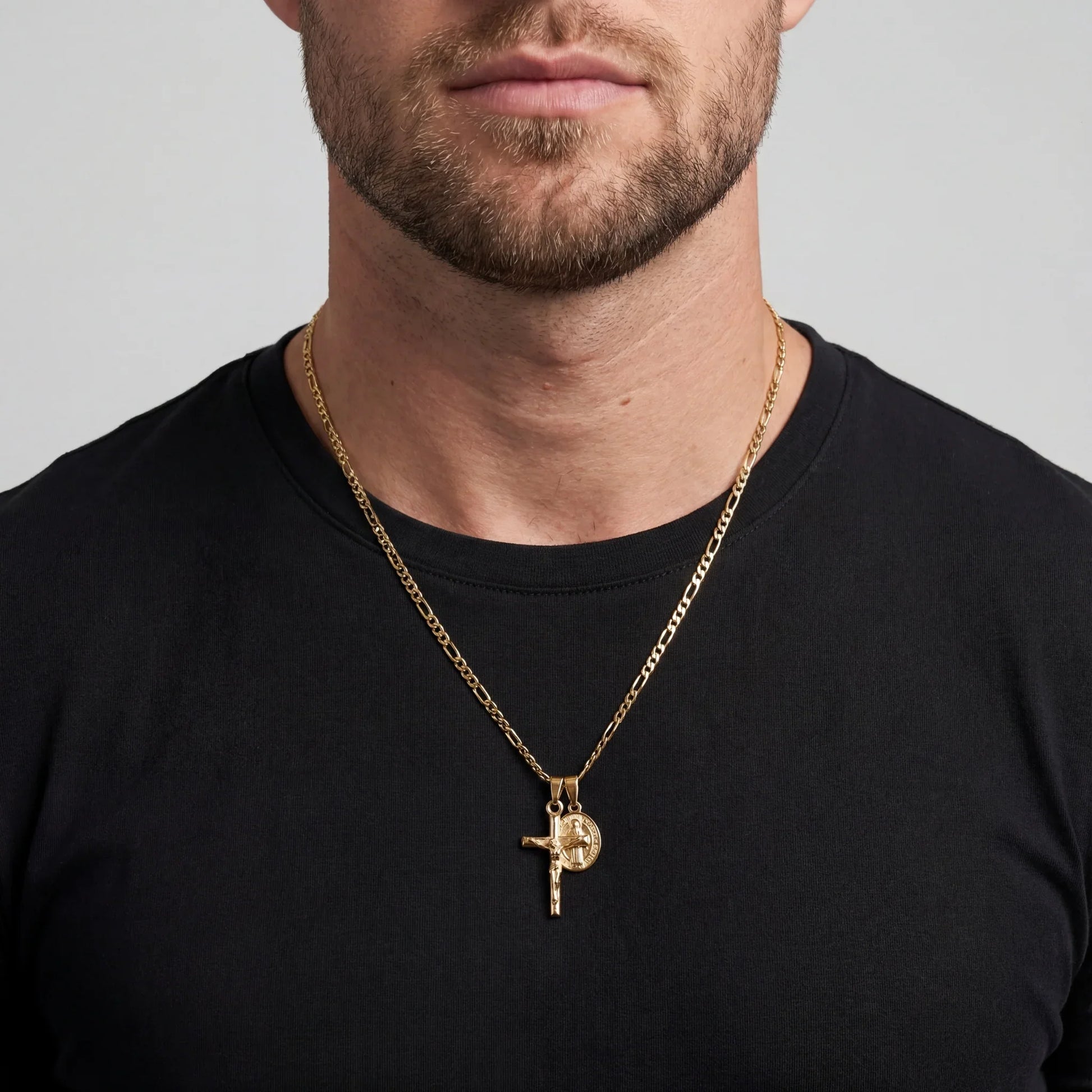 This necklace combines two powerful symbols: a detailed cross and a medallion of Mary. Together they represent protection, strength, and blessing in every situation.