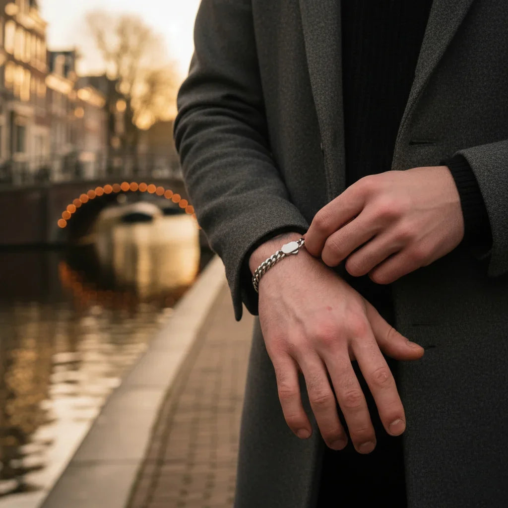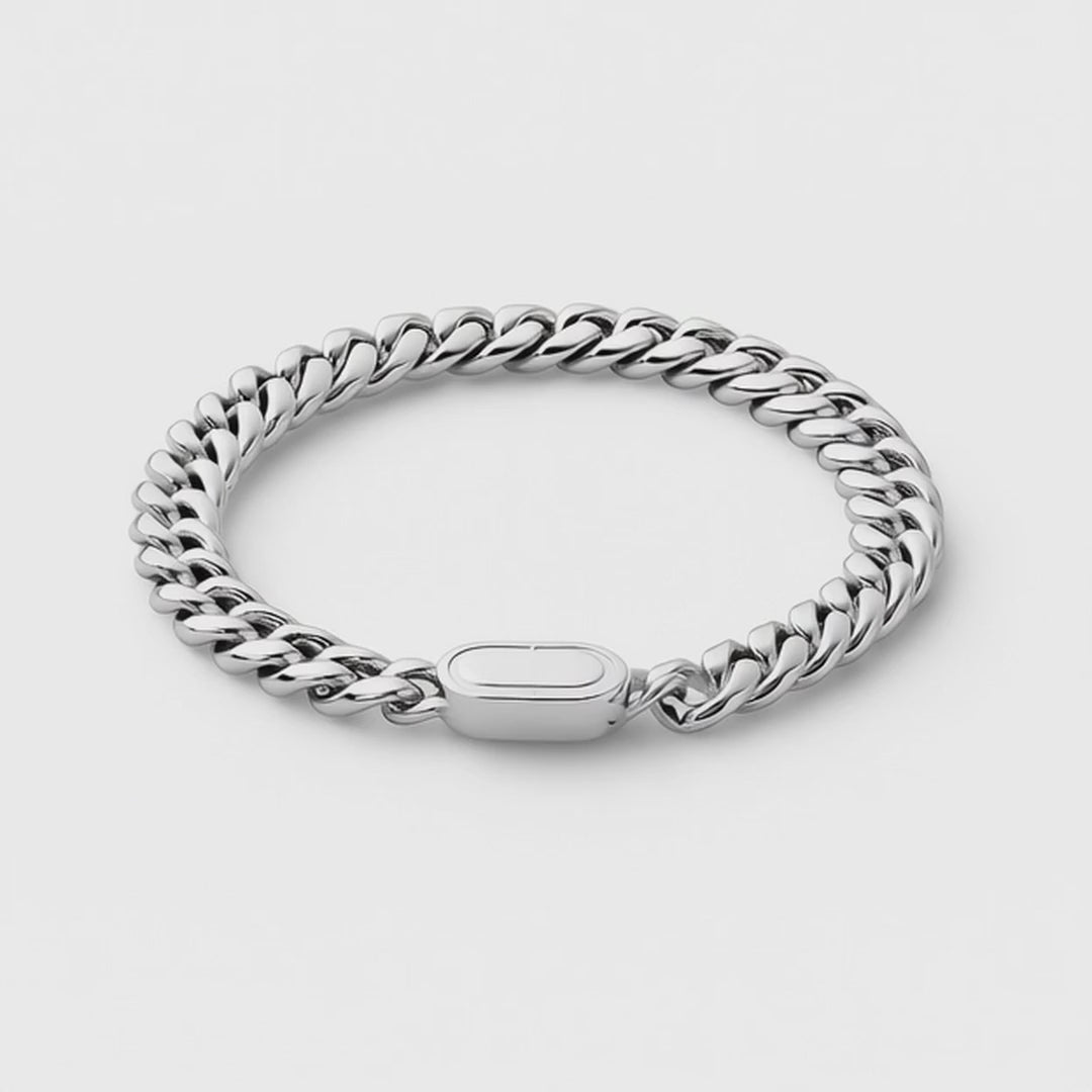 This silver Cuban bracelet with its unique clasp is a must-have. Wear it alone or layer it with other jewelry—it always makes a stylish impression!