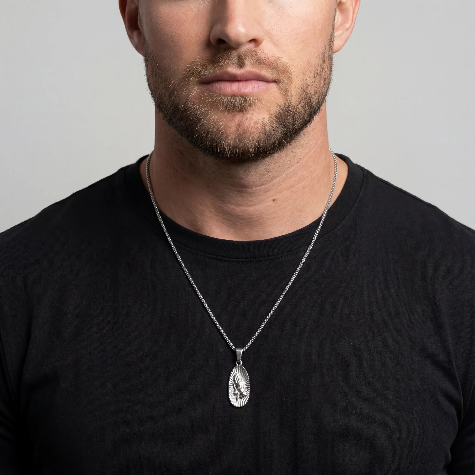 A powerful tribute to faith and devotion. This pendant, featuring folded hands and a radiant background, symbolizes hope, strength, and gratitude. Its sleek, oval shape creates a unique and striking look—spiritual with a modern twist.