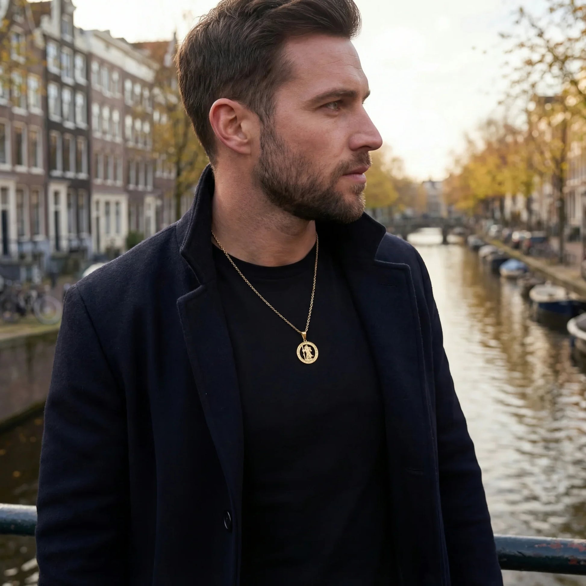 Protected on the go, worn with pride. This pendant features Saint Christopher, the patron saint of travelers, symbolizing protection, strength, and a safe journey. A classic design with deep meaning, available in gold or silver.